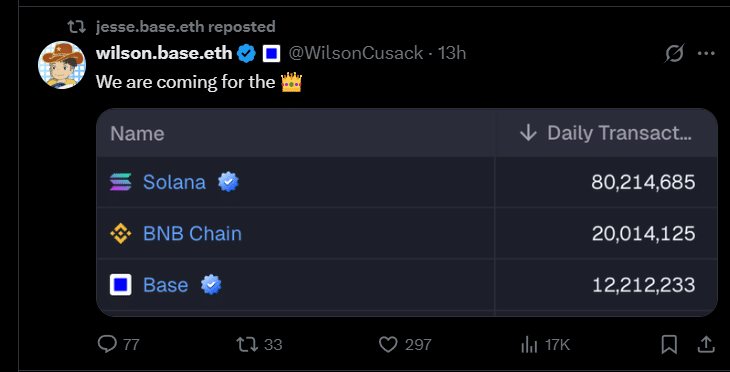 Now, with Base processing millions of weekly transactions and hosting major apps like Friend.tech and Aerodrome, the groundwork is clearly set for a broader rollout.