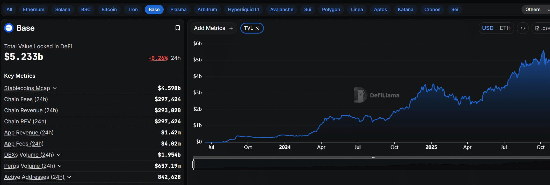 Speculators are already treating Base like the next big airdrop. They’re minting NFTs, chasing yield, and flooding DeFi apps in a frenzy reminiscent of 2021. Total value locked has blown past $5.2 Bn, per DeFi Llama. Whether it’s conviction or blind hope, the money’s pouring in.