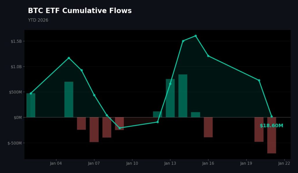 (Source: BTC ETF cumulative flows since the start of 2026 / Blockworks)