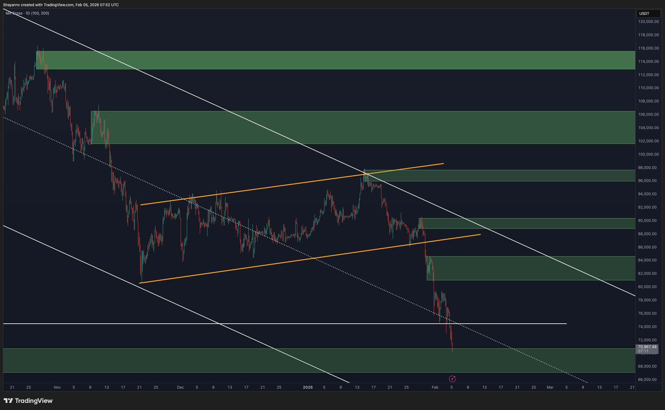Despite the sharp decline, Bitcoin has now reached a critical support level at $70K, which also carries strong psychological importance for market participants. Given the speed and intensity of the recent move, the market is likely in need of a consolidation and corrective phase. As a result, the most probable near-term scenario is choppy, range-bound price action around the $70K support until a clearer directional signal emerges. In the event of a relief bounce, the $75K and $80K supply zones stand out as the primary upside targets.
