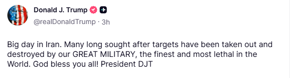 This volatility ensued after Trump’s latest comments on the US/Israel vs Iran war, which included bragging that it was a “big day in Iran.”