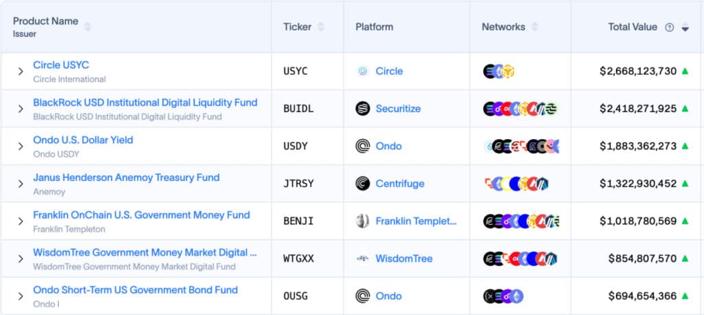 The top five products account for $9.31 billion – 68.8% of the entire sector. Circle’s USYC leads with $2.67 billion, largely structured for non-US investors and domiciled in Bermuda. BlackRock’s BUIDL sits in second at $2.42 billion, managed through Securitize, and targets US Qualified Purchasers with a $5 million USDC minimum entry. That’s not a retail product. Ondo’s USDY holds third place at $1.88 billion with 16,568 holders and a 3.55% APY – the broadest distribution of the top three.